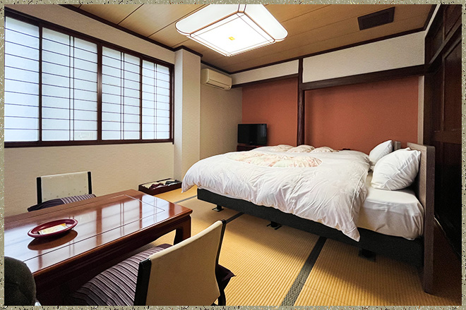 広縁の大きな椅子でゆっくりとお寛ぎいただける客室です。グループでのご利用にも丁度いい広めお部屋になっていますのでファミリーから団体様などに皆様でご利用ください。